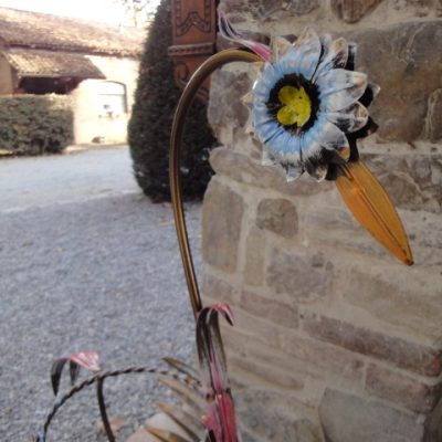 Porta vasi in ferro battuto ( triciclo 2 posti con girasoli ) – ART P 067 FR PED –