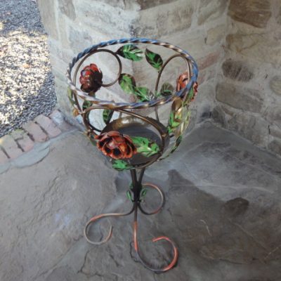 Porta vaso in ferro battuto ( colonna 1 posto con rose ) – ART P 33 FR PED –