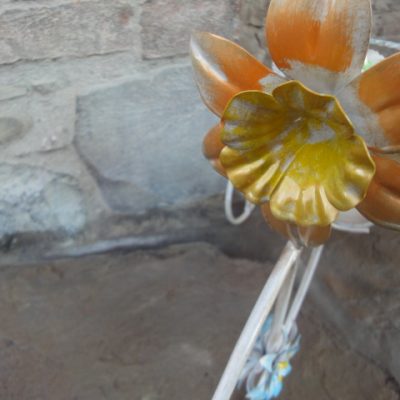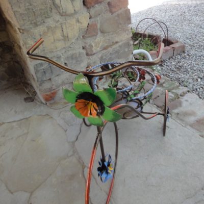 Porta vaso in ferro battuto ( triciclo 2 posti con rose )– ART P 049 FR PED –