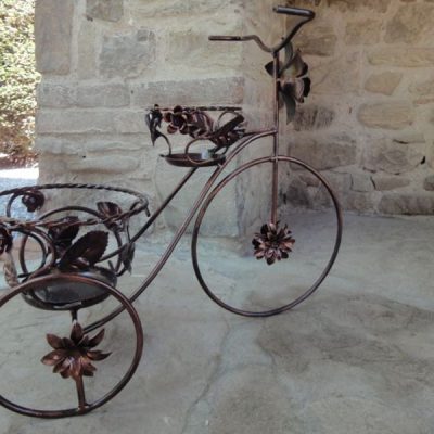 Porta vaso in ferro battuto ( triciclo 2 posti con rose ) – ART P 0671 FR PED –