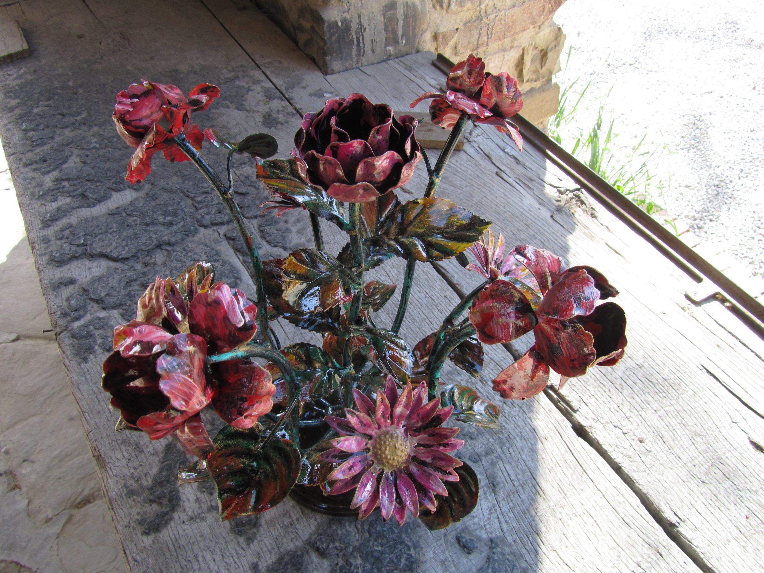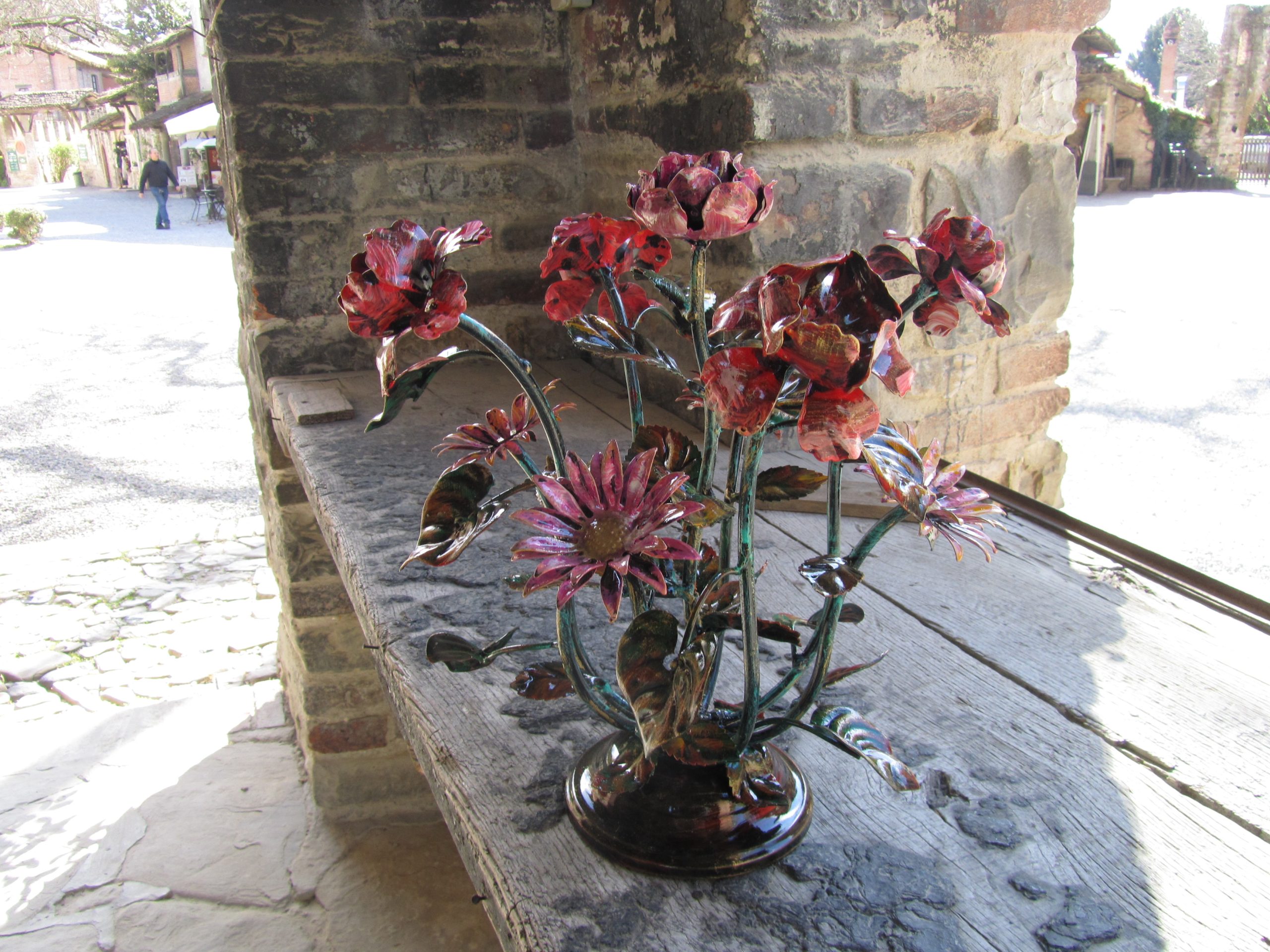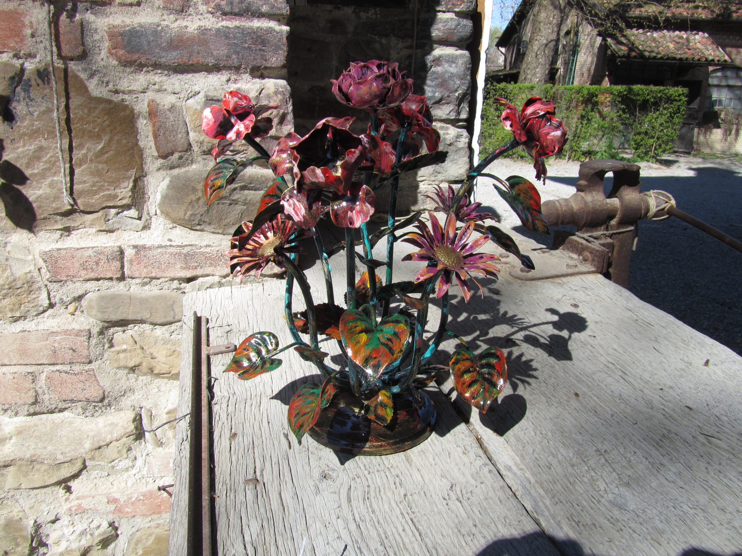 Composizione floreale centrotavola con fiori in ferro battuto – ART 1010 5 FR PED –