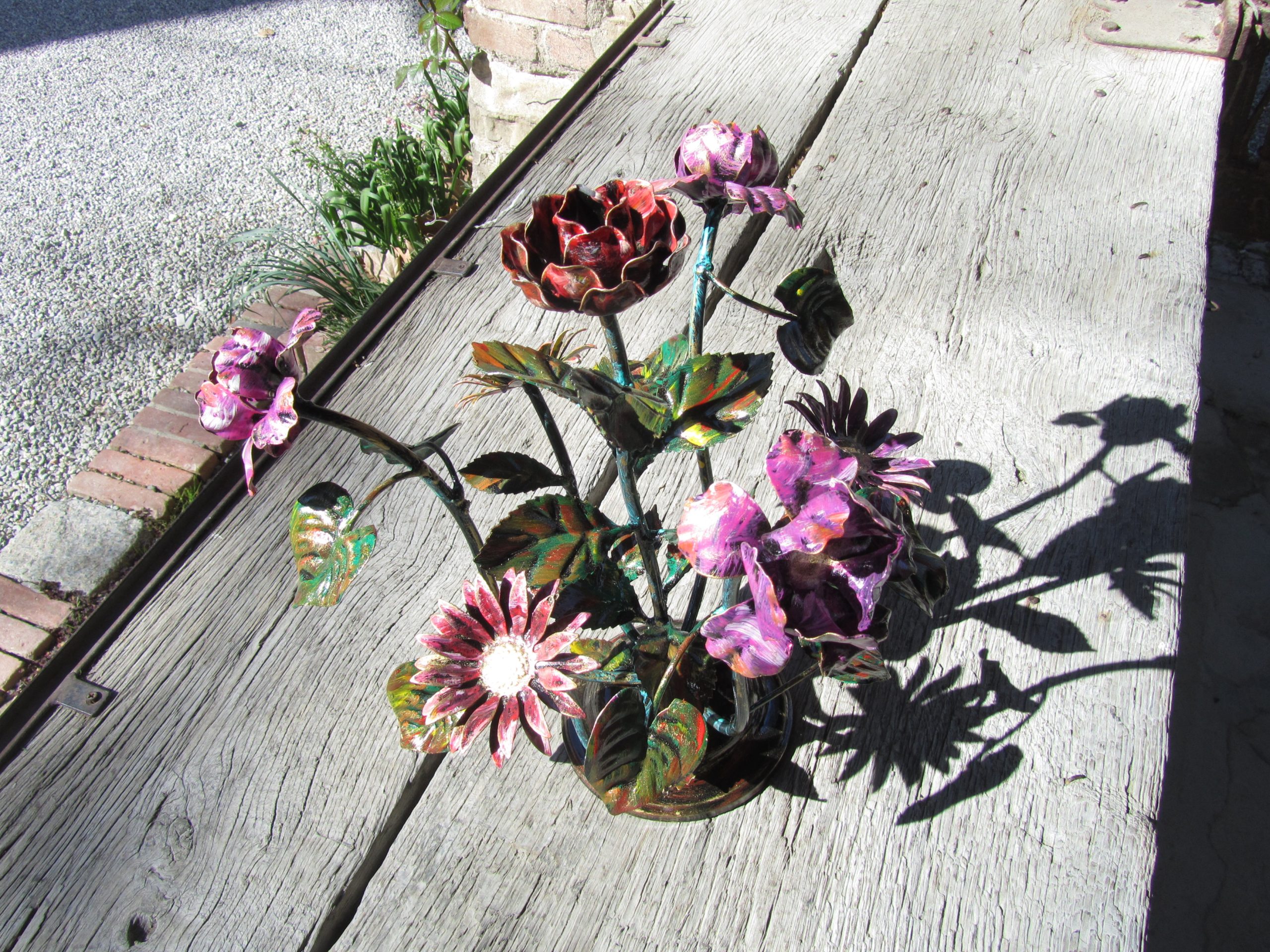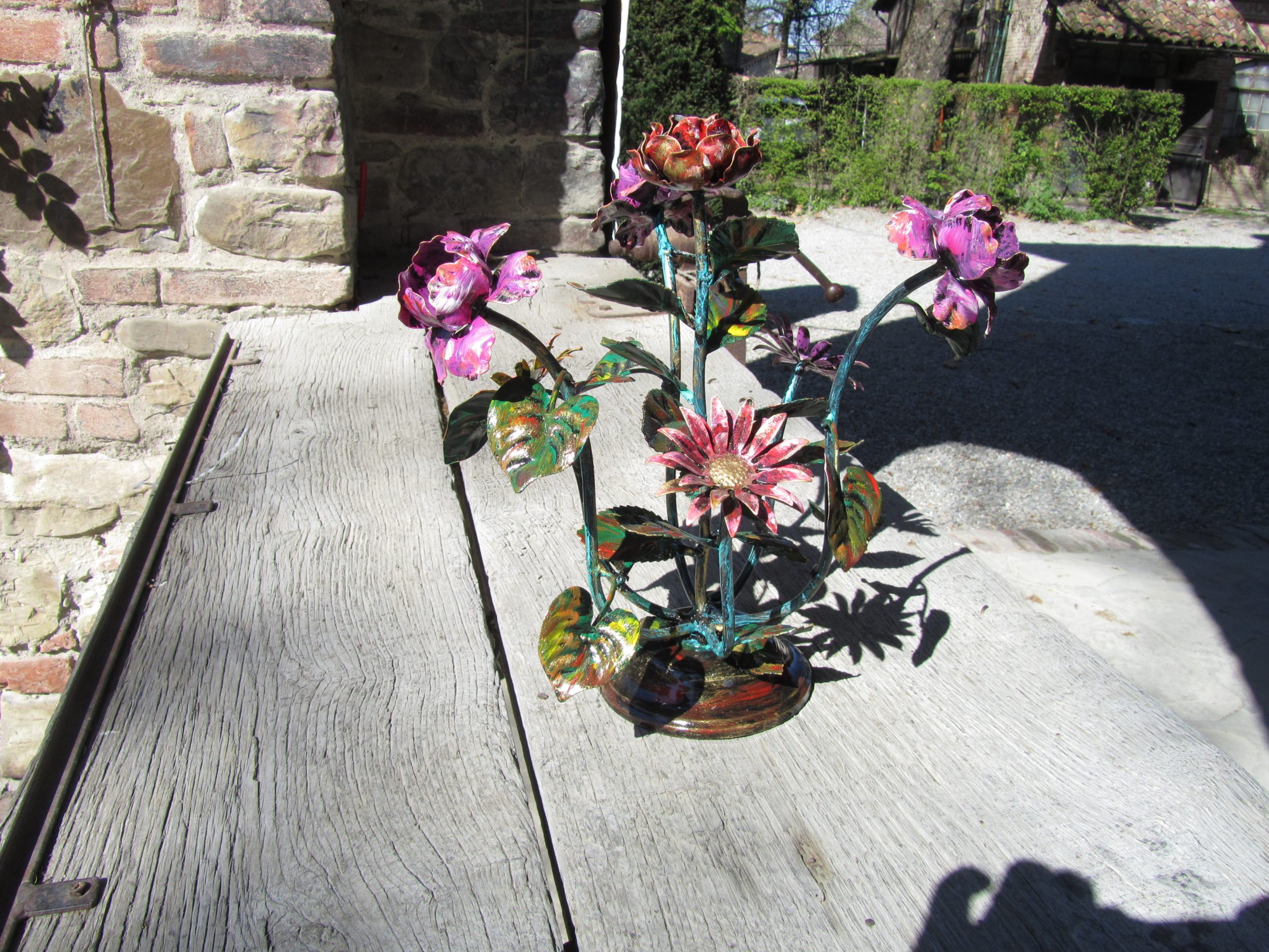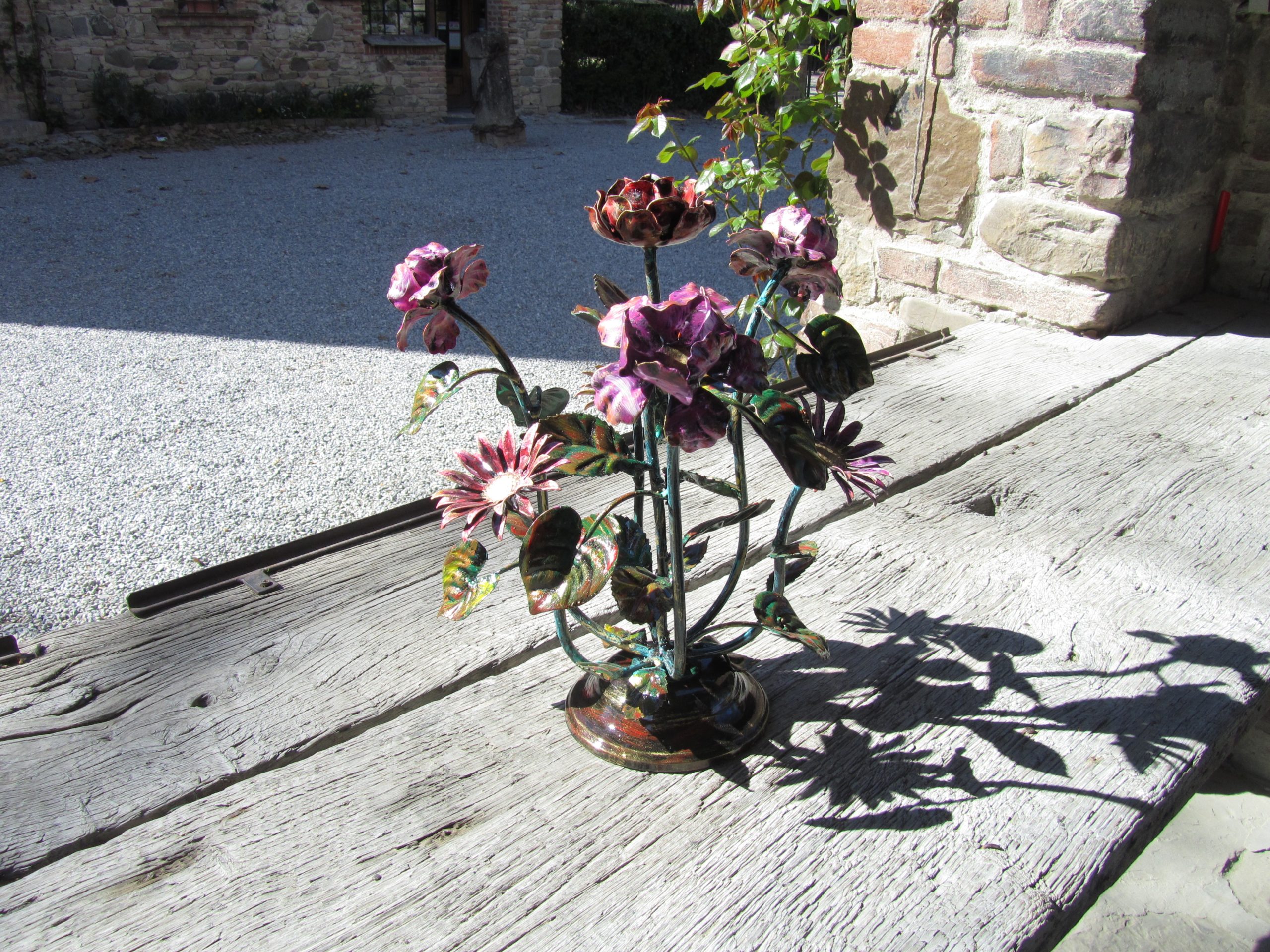 Composizione floreale centrotavola con rose in ferro battuto – ART 1003 4 FM PED –