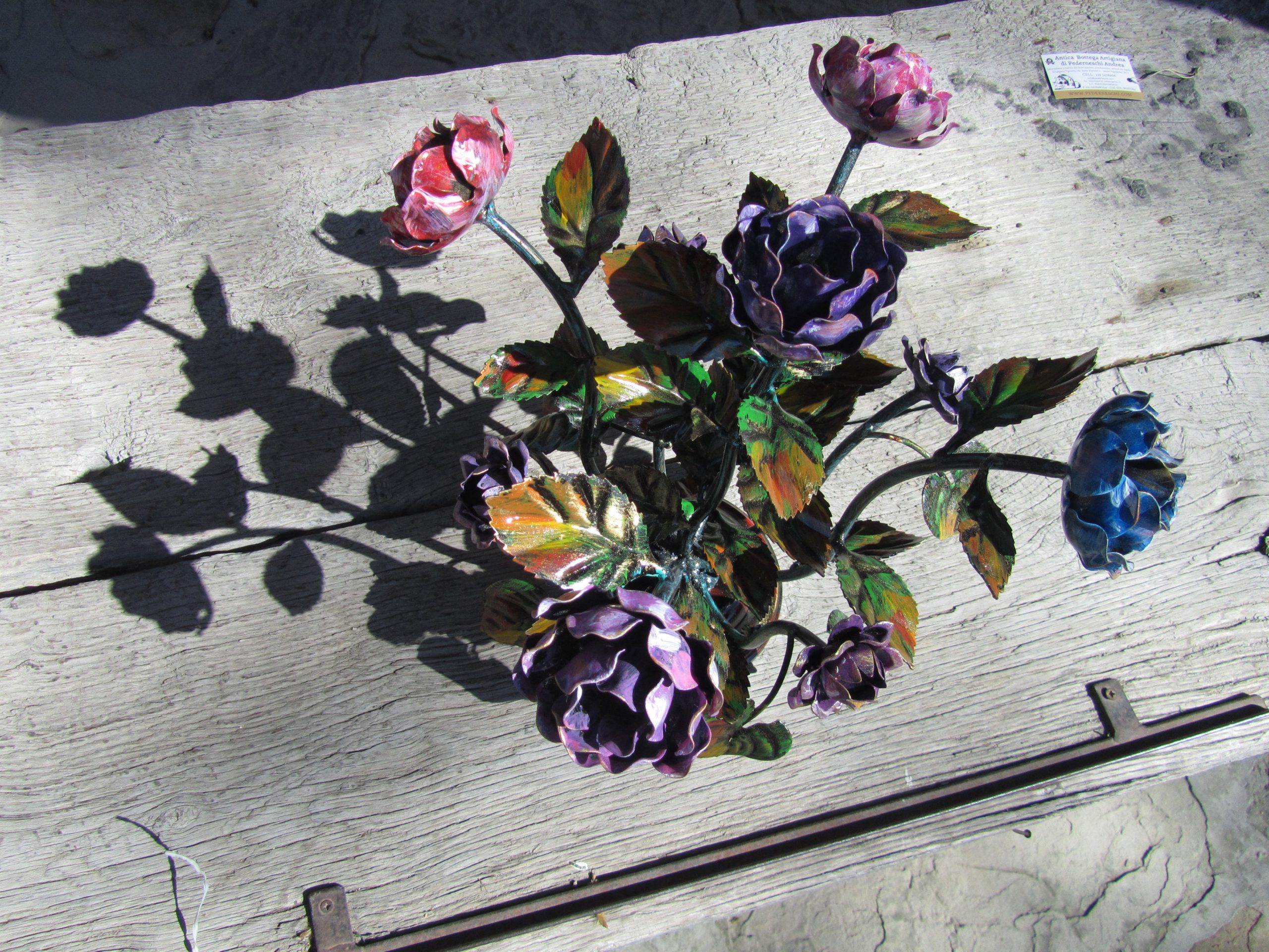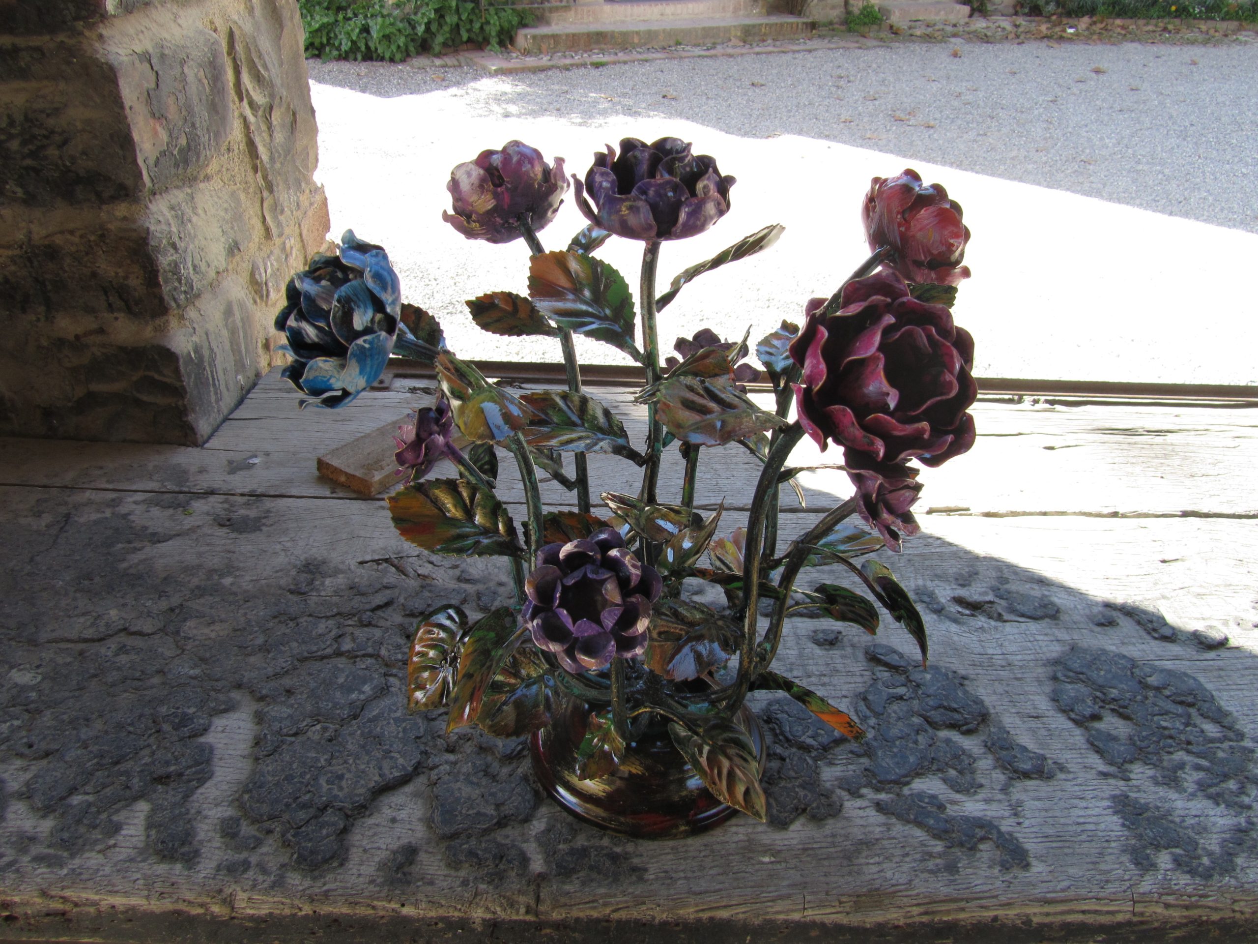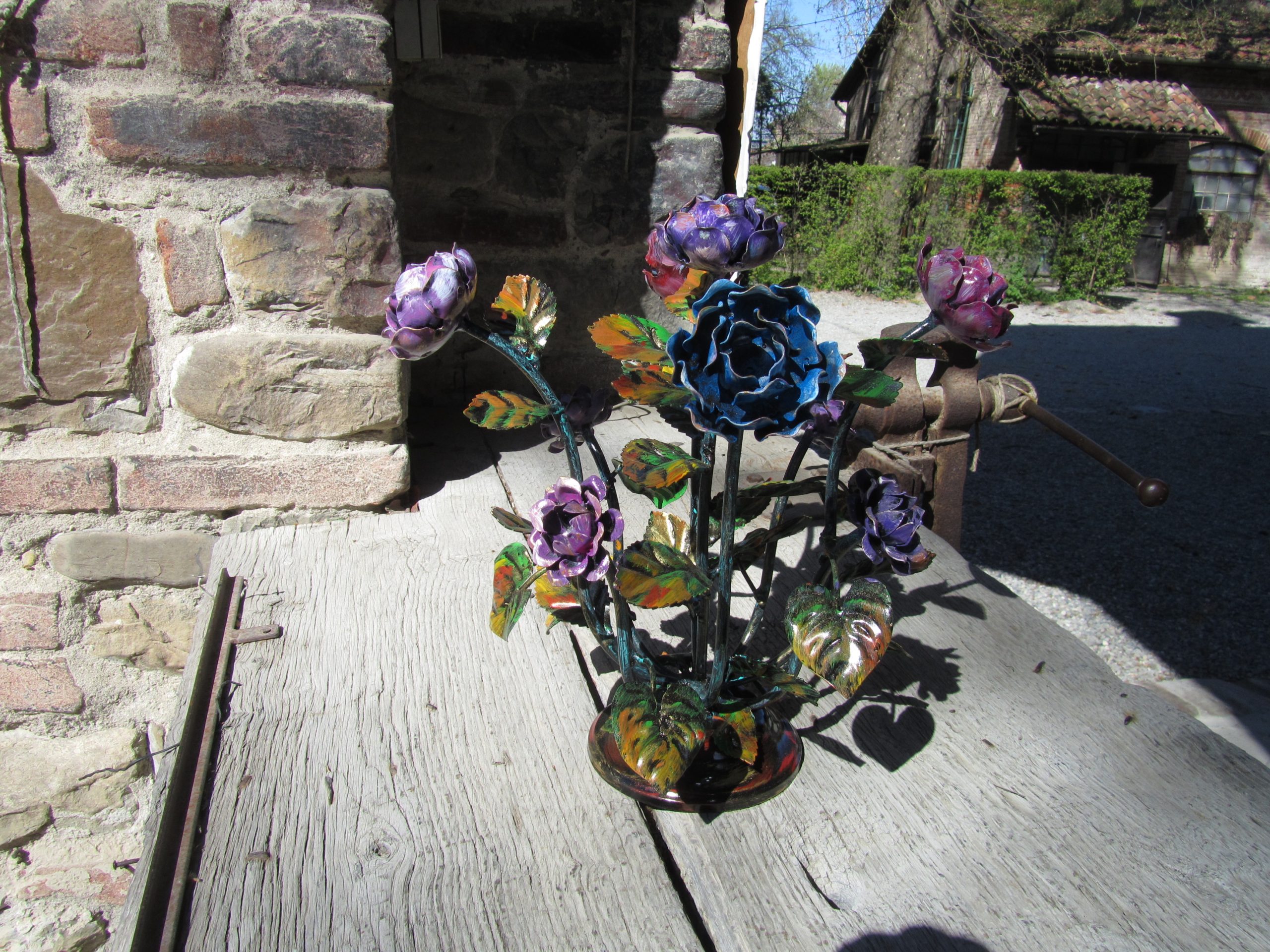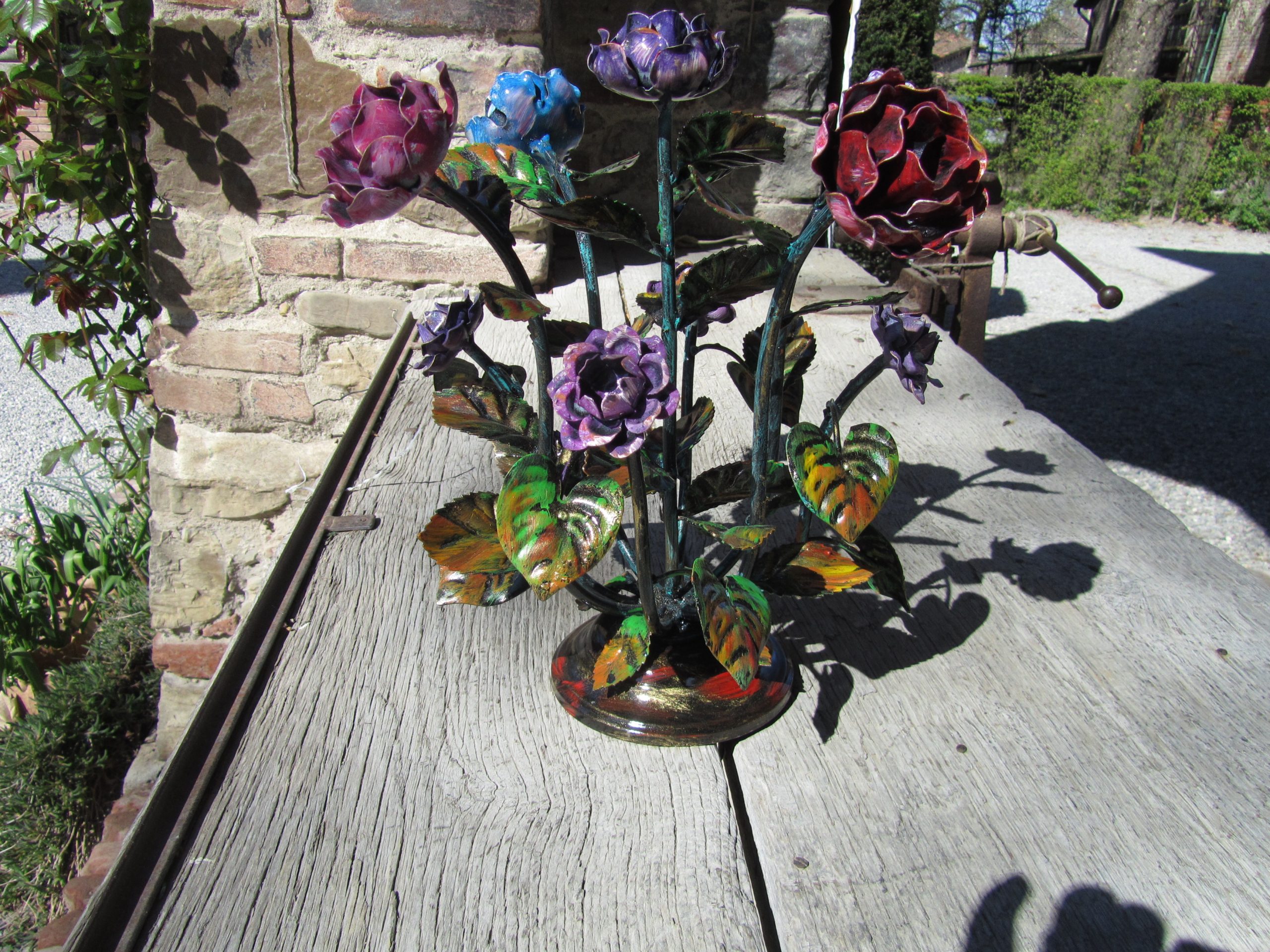 Composizione floreale centrotavola con rose in ferro battuto – ART 1010 5 FR PED –