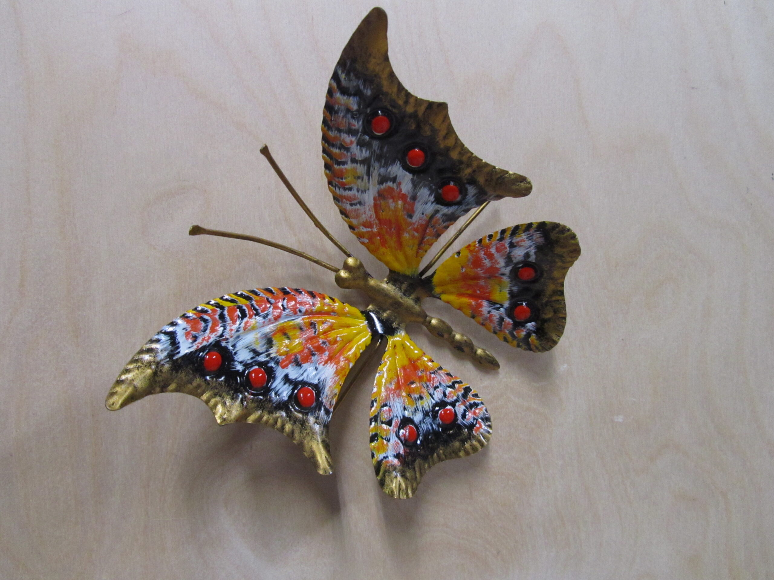 Farfalla decorativa in ferro battuto con antenne battute. Prodotto artigianale lavorato e dipinto a mano.