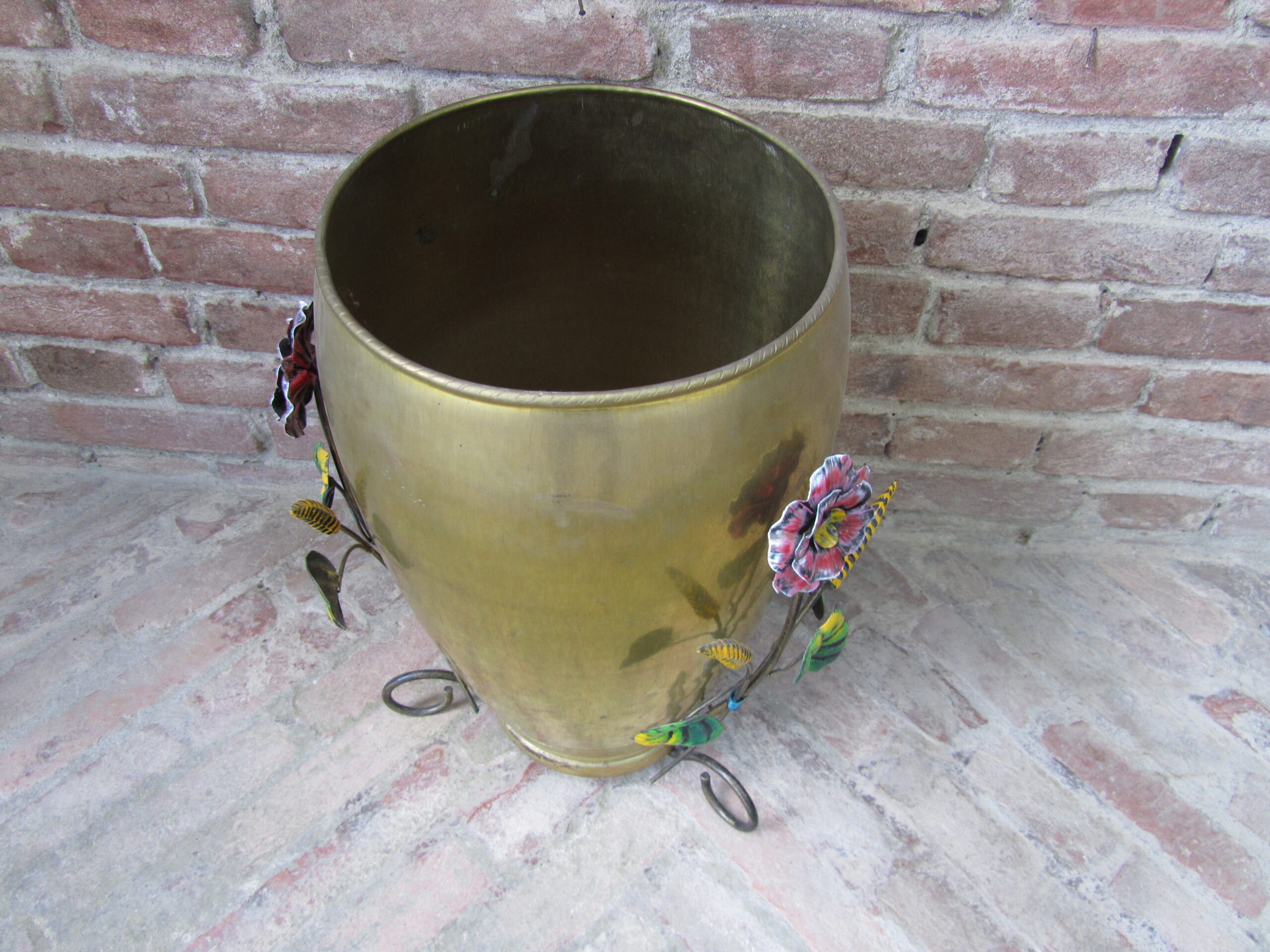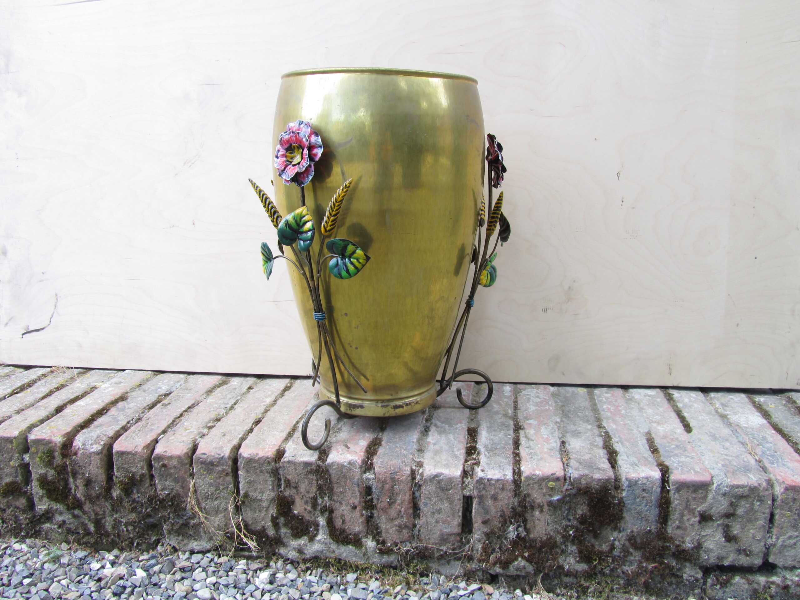 Porta ombrelli in ferro battuto con contenitore in ottone