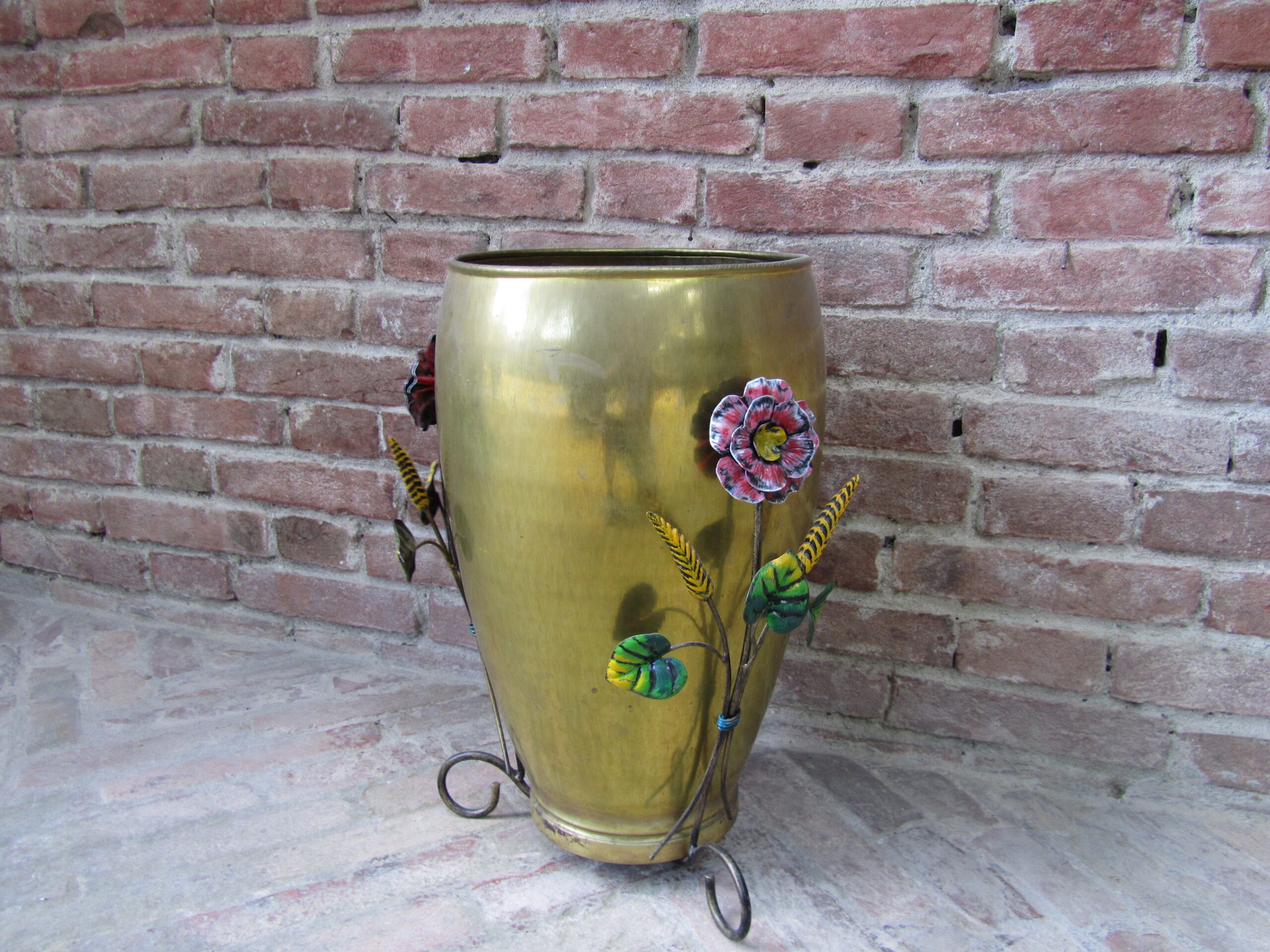 Raffinato portaombrelli realizzato artigianalmente, unendo l’eleganza dell’ottone lavorato alla solidità del ferro battuto, sapientemente forgiato a mano da maestri artigiani. La struttura, robusta e armoniosa, è impreziosita da motivi floreali decorativi, finemente scolpiti e dipinti a mano con colori delicati e duraturi, che donano al pezzo un tocco romantico e retrò.